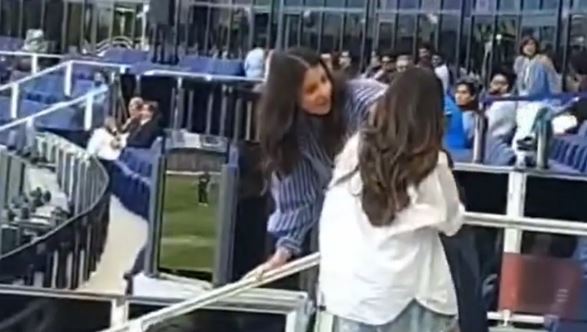 इस दौरान देखने को मिला कि भारतीय कप्तान रोहित शर्मा की पत्नी ऋतिका सजदेह अपने बेटे अहान को लिए खड़ी हुई थी, तभी अनुष्का शर्मा ने अहान को हंसाने के लिए उनसे बातचीत की और मस्तीभरा अंदाज दिखाया। यह पल कैमरे में कैद हो गया और इसका वीडियो सोशल मीडिया पर तेजी से वायरल हो गया है।
