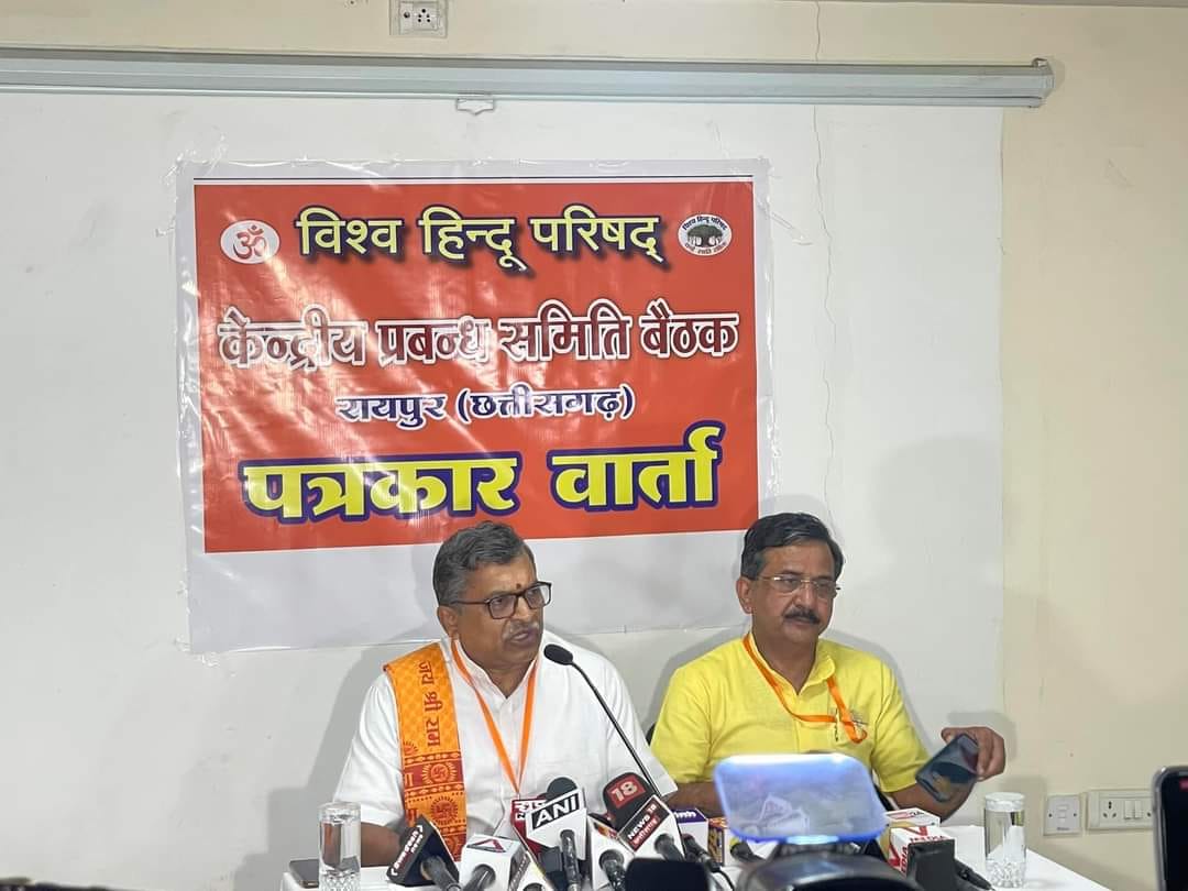 रायपुर 23 जून।चुनावी राज्य छत्तीसगढ़ में विश्व हिन्दू परिषद(विहिप) की केन्द्रीय प्रबंध समिति की कल से यहां शुरू हो रही तीन दिवसीय बैठक में धर्मांतरण, लव जेहाद, गो हत्या व मंदिरों के सरकारी अधिगृहण से मुक्ति जैसे विषयों पर चर्चा होंगी।