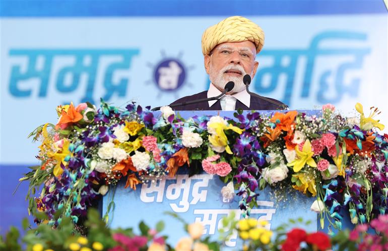 श्री मोदी आज भावनगर में ‘समुद्र से समृद्धि’ कार्यक्रम को संबोधित कर रहे थे। उन्होंने कहा कि अब समय आ गया है कि भारत 2047 तक विकसित भारत के सपने को साकार करने के लिए दुनिया के सामने एक आत्मनिर्भर राष्ट्र के रूप में खड़ा हो।भारत को एक समुद्री महाशक्ति बनाने के अपनी सरकार के दृष्टिकोण के बारे में प्रधानमंत्री नरेंद्र मोदी ने कहा कि देश का लक्ष्य 2047 तक वैश्विक समुद्री व्यापार में अपनी हिस्सेदारी को तीन गुना करना है।