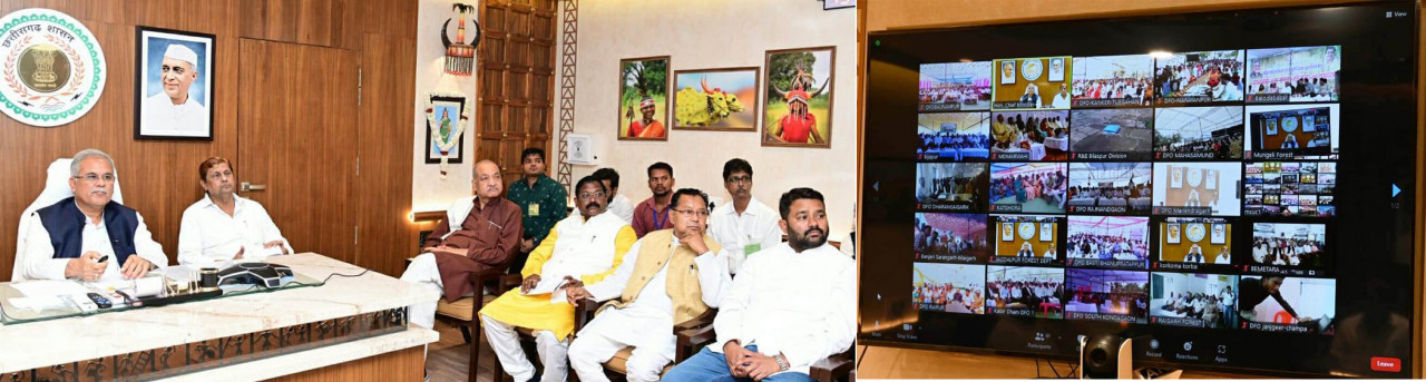 श्री बघेल ने इस मौके पर वन संसाधन अधिकारों को लोगों तक सुगमता से पहुंचाने के लिए मोबाईल आधारित एफआरए टूल का लोकार्पण किया और वनोपज आधारित अर्थव्यवस्था को गति देने तथा व्यापारियों की सुविधा के लिए छत्तीसगढ़ में नेशनल ट्रांजिट पास सिस्टम का शुभारंभ किया। साथ ही उन्होंने शहीद महेन्द्र कर्मा सामाजिक सुरक्षा योजना के अंतर्गत 1458 हितग्राहियों के खाते में कुल 22 करोड़ रुपए की राशि का ऑनलाइन अंतरण किया। इस अवसर पर कृषि मंत्री रविन्द्र चौबे, खाद्य मंत्री अमरजीत भगत, मुख्यमंत्री के सलाहकार प्रदीप शर्मा, संसदीय सचिव शिशुपाल सोरी, चन्द्रदेव प्रसाद राय, विधायक श्रीमती उत्तरी गनपत जांगड़े, मुख्य सचिव अमिताभ जैन, वन एवं जलवायु विभाग के प्रमुख सचिव मनोज कुमार पिंगुआ, प्रधान मुख्य वन संरक्षक एवं वन बल प्रमुख संजय शुक्ला भी उपस्थित थे।