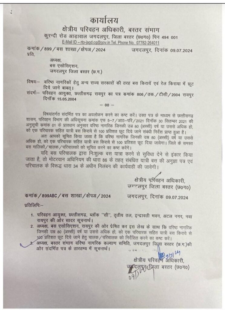 हालांकि, जुलाई 2024 में बस्तर के क्षेत्रीय परिवहन अधिकारी ने बस संचालकों को आदेश का पालन सुनिश्चित करने के निर्देश दिए थे और उल्लंघन पर कार्रवाई की चेतावनी भी दी थी, फिर भी स्थिति में सुधार नहीं हुआ है।