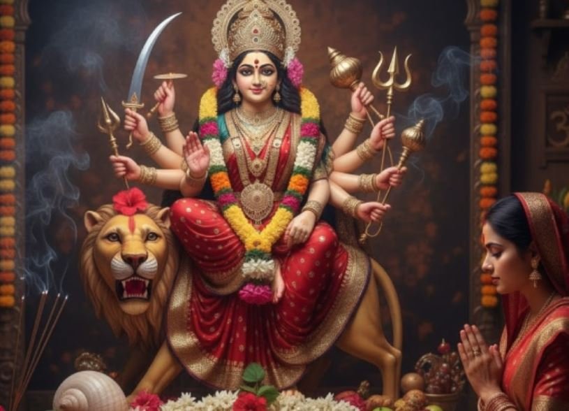 मां दुर्गा को लाल चुनरी समेत ‘सोलह शृंगार’ की सामग्री जरूर चढ़ाएं।