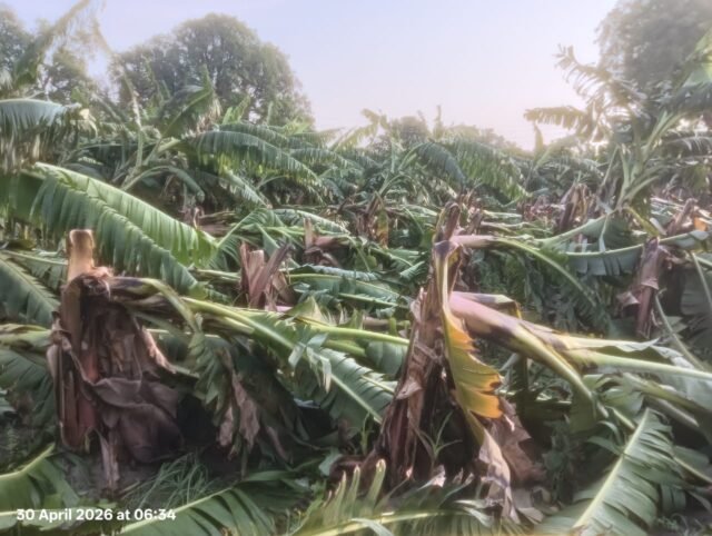 सुल्तानपुर जिले के विभिन्न क्षेत्रों और उससे सटे अयोध्या के ग्रामीण इलाकों में इस बार केले की फसल अच्छी बताई जा रही थी। कई जगहों पर फलों का आना भी शुरू हो गया था, जिससे किसानों को अच्छी आमदनी की उम्मीद थी।लेकिन अचानक आए तूफान ने इन उम्मीदों पर पानी फेर दिया। बड़ी संख्या में केले के पेड़ जड़ से उखड़कर गिर गए और पूरी फसल जमीन पर बिछ गई।