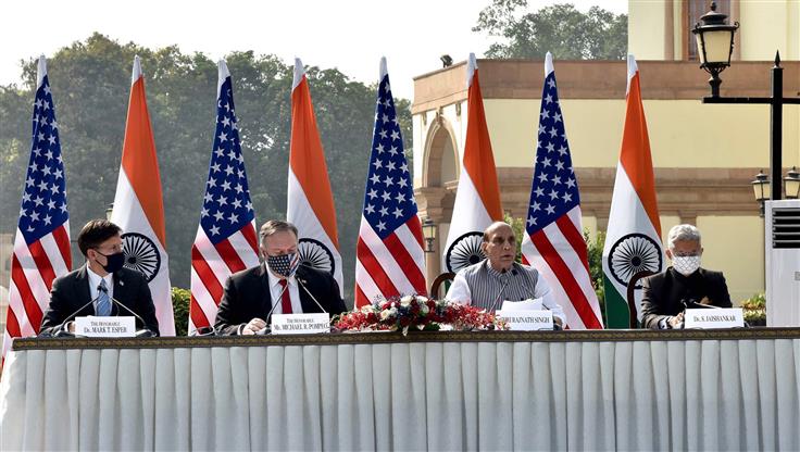 नई दिल्ली 27 अक्टूबर।भारत और अमरीका के रक्षा और विदेश मंत्रियों की तीसरी टू प्लस टू मंत्रिस्तरीय वार्ता में आज ऐतिहासिक बुनियादी आदान-प्रदान और सहयोग समझौते(बीईसीए) पर हस्ताक्षर किए गए।