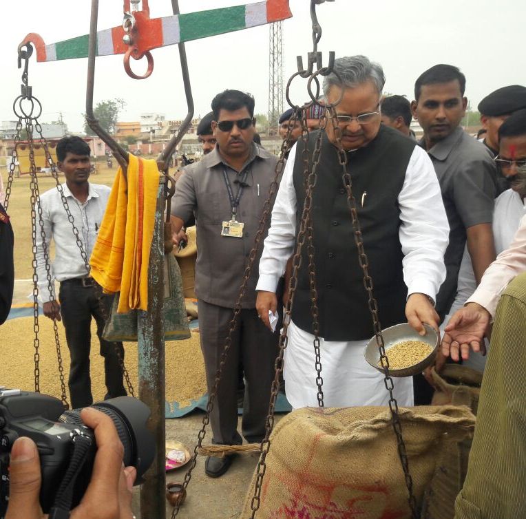 मुख्यमंत्री डॉ. रमन सिंह ने आज प्रथम दिवस पर राजनांदगांव जिले के ग्राम अंजोरा स्थित धान खरीदी केन्द्र का आकस्मिक निरीक्षण किया।उन्होंने वहां धान बेचने के लिए आए किसानों से बातचीत करते हुए उन्हें राज्य शासन द्वारा धान और मक्का खरीद के लिए उपार्जन केन्द्रों में दी जा रही सुविधाओं की जानकारी दी।