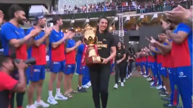 आरसीबी की मेंस टीम ने एम चिन्नास्वामी स्टेडियम में आरसीबी अनबॉक्स इवेंट के दौरान स्मृति मंधाना (Smriti Mandhana) की ब्रिगेड का जोरदार स्वागत किया। डब्ल्यूपीएल 2024 का खिताब जीतने वाली आरसीबी टीम को पुरुष आरसीबी टीम ने गार्ड ऑफ ऑनर दिया। उनका वीडियो तेजी से सोशल मीडिया पर वायरल हो रहा है जिसे फैंस काफी ज्यादा पसंद कर रहे हैं।