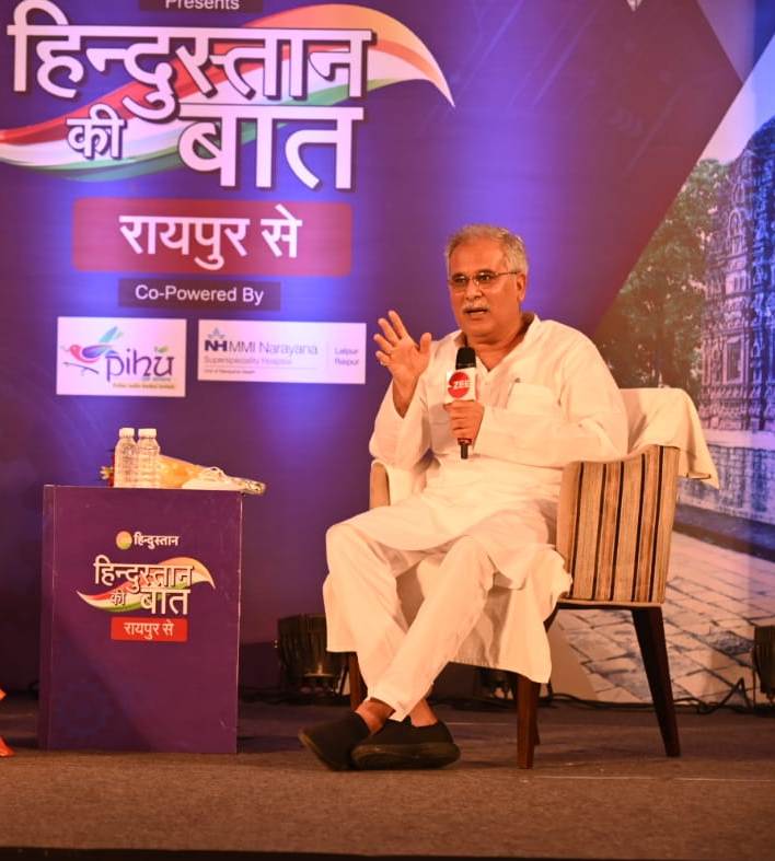 श्री बघेल ने आज यहां एक निजी समाचार चैनल द्वारा आयोजित कार्यक्रम ‘‘हिन्दुस्तान की बात‘‘ के दौरान कहा कि पिछले ढ़ाई साल में अनेक चुनौतियां आयी, जिसका छत्तीसगढ़ ने बड़े ही हौसले के साथ सामना किया। कोरोना संकट काल में भी छत्तीसगढ़ की तरक्की और विकास का पहिया गतिमान रहा। राज्य की संस्कृति और परंपरा को आगे बढ़ाते हुए सभी को स्वास्थ्य, शिक्षा, रोजगार उपलब्ध कराने के लिए सरकार लगातार प्रयासरत है। किसानों की कर्जमाफी हो या उन्हें उनकी उपज का वाजिब मूल्य दिलाने की बात हो, सरकार ने हर क्षेत्र में अपना वायदा पूरा किया है। मध्यम और गरीब वर्ग को राहत देने के लिए बिजली बिल हाफ योजना लागू की गई है।